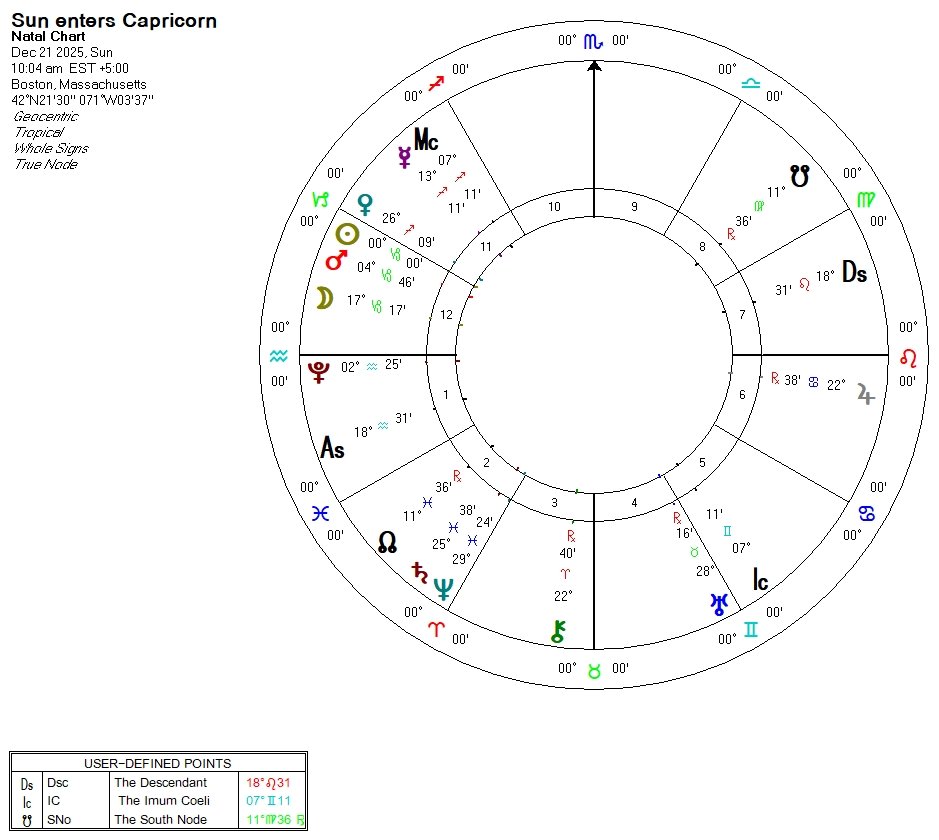 This lunation, in a square with Saturn and Neptune in Pisces, will not let us escape what has been difficult over the last several weeks. The hard aspect between Mars in Sagittarius and Saturn that peaked on December 8, was active from December 4-14th, and brought tension, conflict, accidents, and endings. We've been experiencing these troubles in the mutable area–Gemini, Virgo, Sagittarius and Pisces–since March 2023. The challenge will move into the cardinal signs–Capricorn, Aries, Cancer, and Libra–once Saturn enters Aries on February 13, 2026. We don't have to watch out for such intensity again until Mars enters Aries on April 10th.