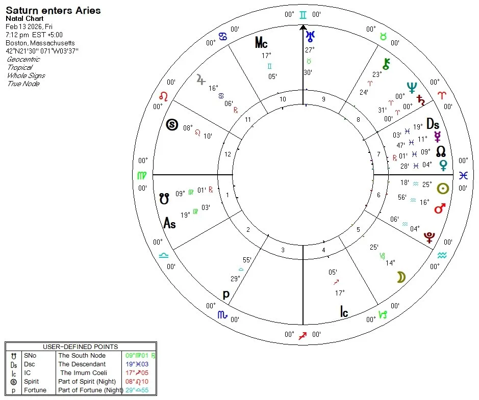 February 13th: Saturn moves into Aries until April 2028