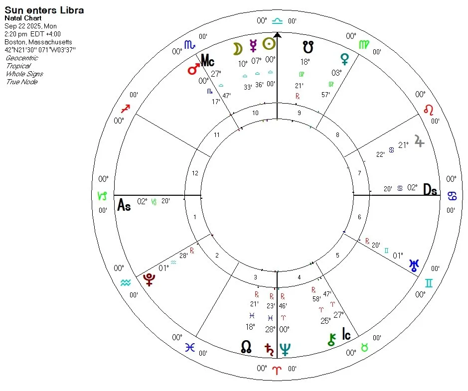 Mercury is ruling this lunation from Libra, putting a focus on equality and justice. Mercury in the sign of the diplomat wants to help us broker peace and harmonize with has been causing us consternation. The Moon will immediately depart Virgo and conjoin with Mercury at the Equinox, helping us align our mind with balance.